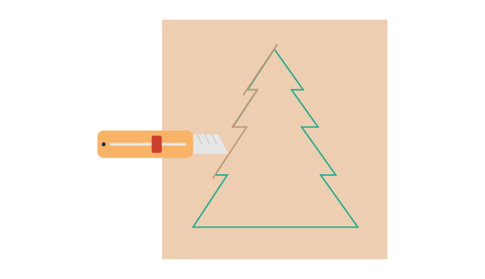 Using scissors, a knife, or a ruler, cut through the cardboard following the tree shape. To get a fine cut, use the tool that is most precise.