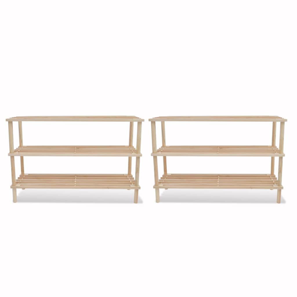 vidaXL 3-Tier Shoe Racks 2 pcs Solid Fir Wood