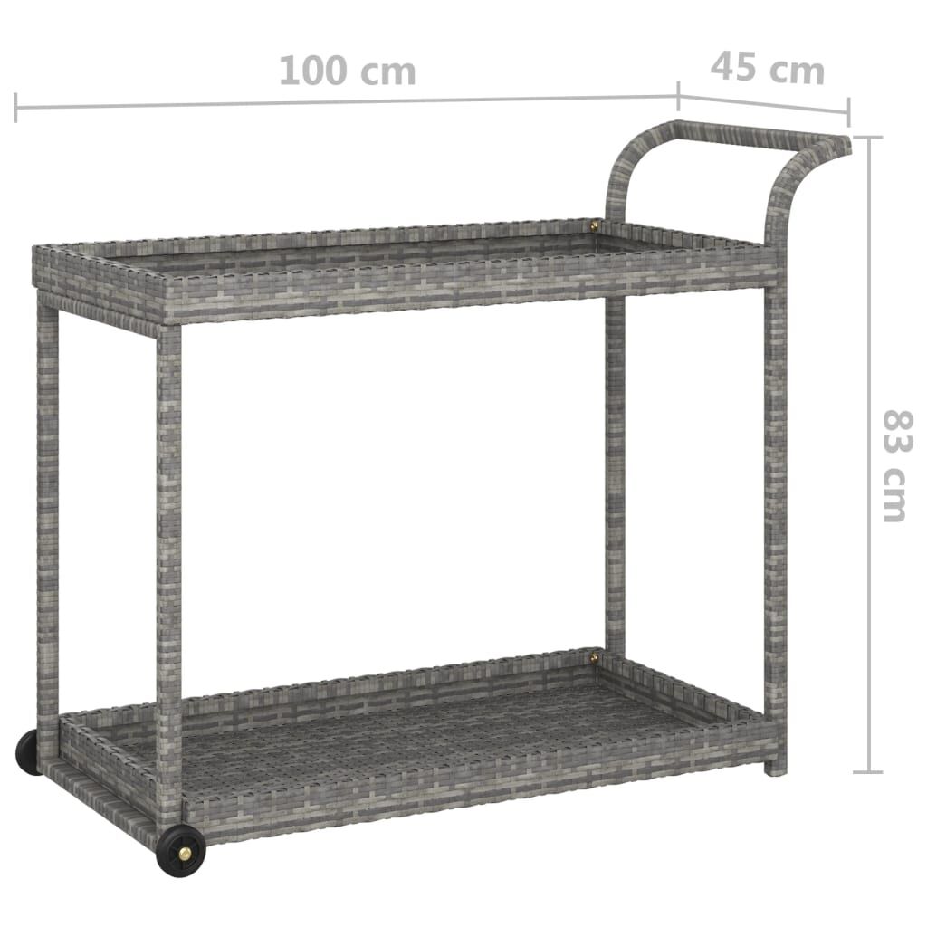 vidaXL Bar Cart Grey 100x45x83 cm Poly Rattan