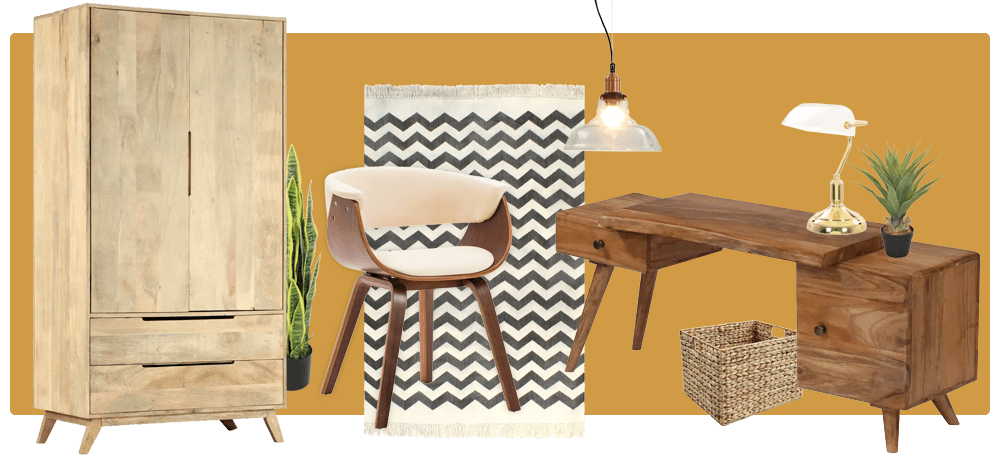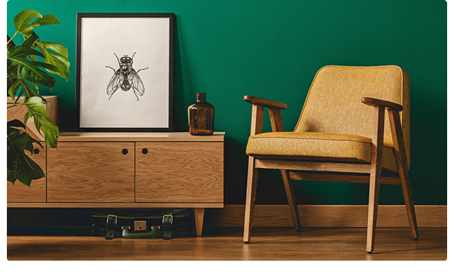 One thing that you can’t miss in a retro interior are the curvy shapes and soft lines in furniture and accessories. Retro furniture can also be recognized by its tapered legs and the use of wood. This can be either dark or light wood which can be used in the same room. Materials fitting the retro interior design style are wood, rattan, plastic, cork, jute, wool and velvet.