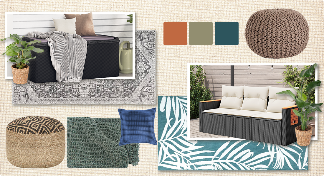 Complete the look with accessories that remind you of the island life. Opt for throws and pillows in combinations of white and blue or tropical patterns. Decorate with macrame, white candles, and lighting fixtures such as rattan hanging lanterns. Add decorative rattan baskets, bamboo stools, and cotton cushions.