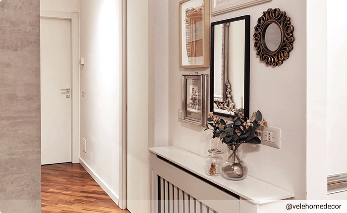 A mirror in your hallway has a double purpose. You need it, there’s no doubt in that. In case you have a small space, a mirror will make it look brighter and more spacious. Reflecting the light, the mirror creates the illusion of a larger hallway. Play with different shapes and frames, to emphasize its decorative purpose.